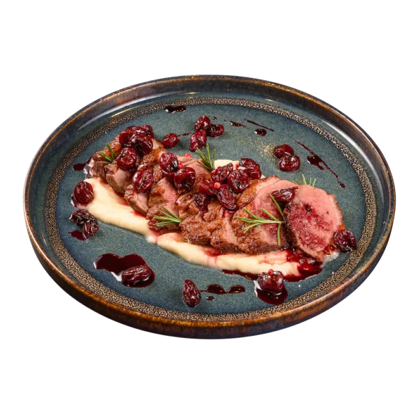 ПАТЕШКО МАГРЕ С ВИШНИ ВЪРХУ ПЮРЕ ОТ КАРФИОЛ