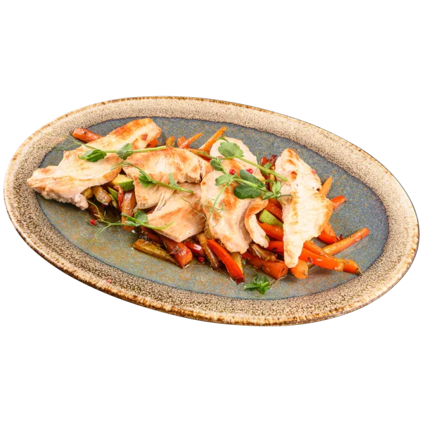 / пилешко филе, задушени зеленчуци, подправки Провансал /