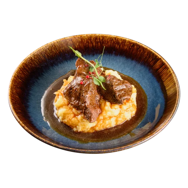 / телешко бон филе , картофено пюре с трюфел паста, пепър сос/