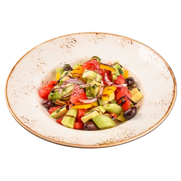 / авокадо, домати, краставици, пресни чушки Калифирния, маслини, червен лук, песто, балсамова редукция /