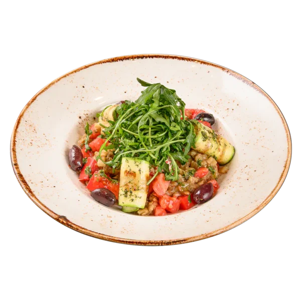 / пресен домат, печен патладжан, маслини, печена тиквичка, песто, катък, рукола, зехтин /