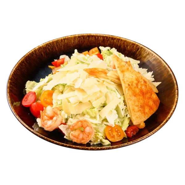 / хрупкав айсберг, чери домати, хрупкаво скариди, пармезан, цезар сос, тортила чипс /