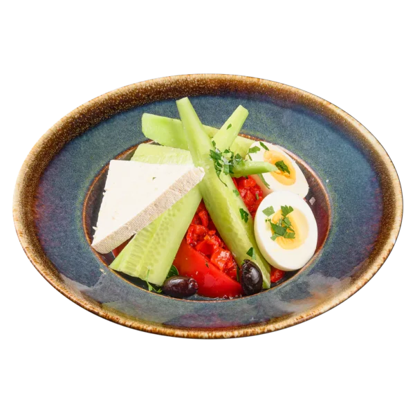 / печена чушка, домат, маслини, краве сирене, краставици, яйце /